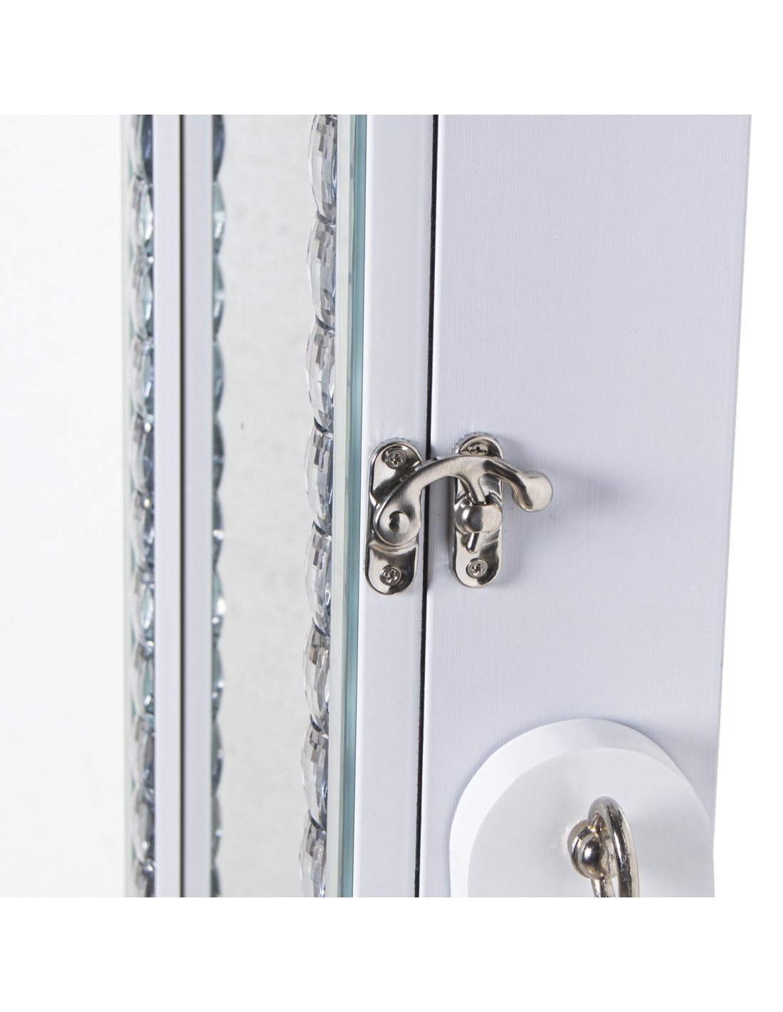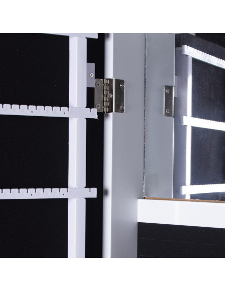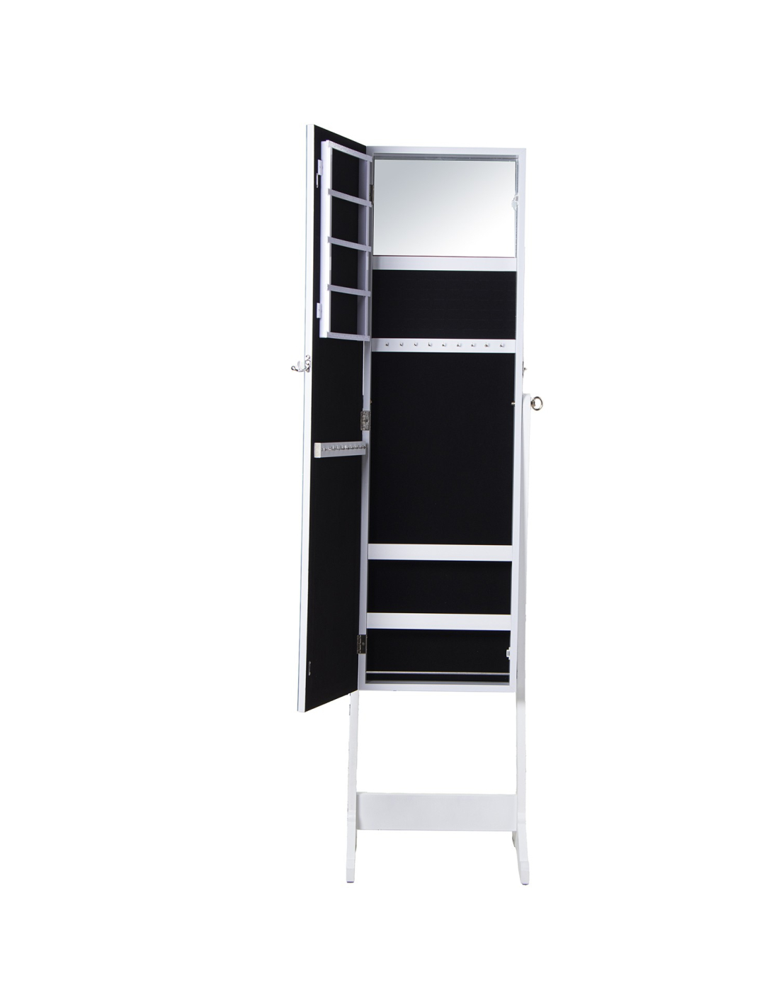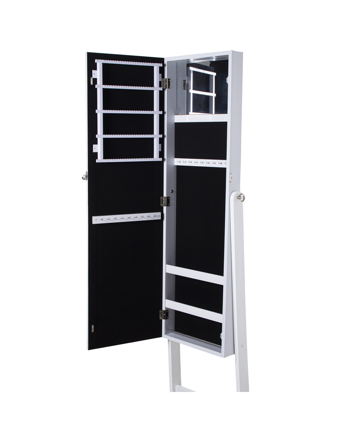Sencillo y elegante Espejo joyero de pie blanco con marco espejo decorado que te hará ahorrar espacio y dará un toque elegante a tu dormitorio. Una manera diferente de tener todo organizado y a la vista, a la vez que tenemos una pieza especial en el dormitorio.