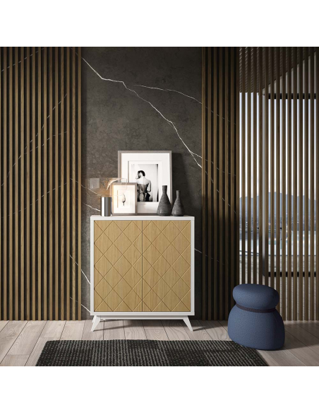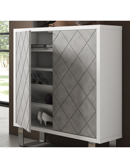 Estupendo Zapatero taquillón Kenzo 312 pata retro, un mueble funcional y elegante, que podrás personalizar para obtener un estilo más retro o más moderno. Los colores naturales en distintas tonalidades de roble crearán un aspecto más tradicional, mientras que si apuestas por colores lisos como los lacados, puedes obtener un aspecto más moderno. Este práctico taquillón puede tener múltiples usos. Un zapatero con baldas te permite almacenar distintos tipos de zapatos, todos juntos. Por otra parte, este mueble auxiliar puede ser utilizado para guardar y ordenar otro tipo de cosas, como documentos, material escolar, o todo lo que te puedas imaginar. Selecciona tus acabados preferidos en los desplegables y especifica la tonalidad en el cuadro de texto.
