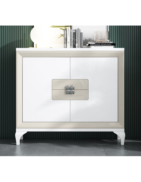 Precioso Mueble funcional Coco 12 pata chippendale. Una forma creativa de almacenar todo tipo de objetos o documentos. Organizar el calzado es sólo una de las posibilidades de uso que podrás otorgar a tu nuevo taquillón. Almacena todo lo que puedas imaginar: Juguetes, vajilla, cristalería... El estupendo estilo de este mueble auxiliar te permite ubicarlo donde desees. En tu salón, dormitorio o incluso recibidor o zonas de paso, tú eliges. Un mueble multifunción que podrás combinar con todo tipo de colores y texturas. Personalízalo eligiendo tus acabados preferidos de nuestra carta de colores. Su dos cajones centrales están rematados con tiradores tipo "joya", que añaden un toque de elegancia y buen gusto a tu hogar. Descubre nuestra variedad de acabados y personaliza a tu gusto tu nuevo taquillón.