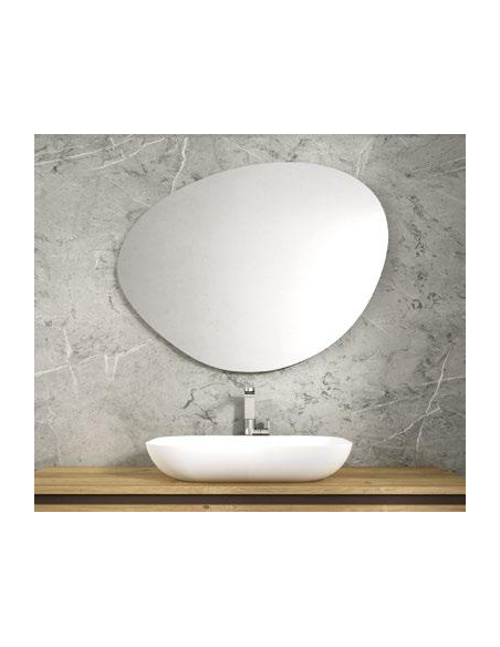 Espejo forma piedra sin marco disponible en varias medidas para que encuentres el perfecto para el baño de tu hogar.