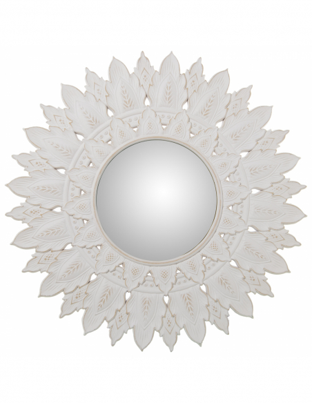 Espejo redondo ø70cm madera calada blanco decapé perfecto para aportar amplitud y decorar cualquier rincón de tu hogar. Combínalo con cualquier estilo de mobiliario y disfruta de su bonito y único diseño.