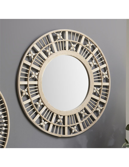 Espejo decorativo madera blanco decapado símbolos con bolas