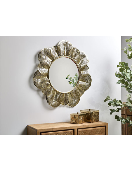 Espejo decorativo pétalos oro
