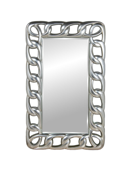 Espejo de pared estilo cadena plateada, es la pieza perfecta para añadir un toque de sofisticación y estilo moderno a cualquier estancia. Fabricado en PU de alta calidad y con un acabado plateado, su diseño simula una cadena entrelazada que resalta la textura y el detalle artesanal de la estructura. El espejo aporta amplitud visual a espacios como salones, recibidores, dormitorios u oficinas, al tiempo que se convierte en un elemento decorativo llamativo. Gracias a su diseño robusto y elegante, es ideal para complementar ambientes contemporáneos, industriales o minimalistas, aportando luz y reflejos que elevan la decoración del espacio.