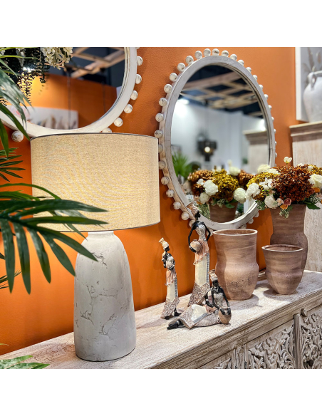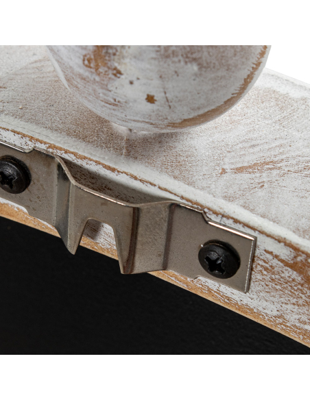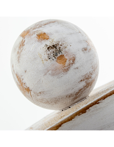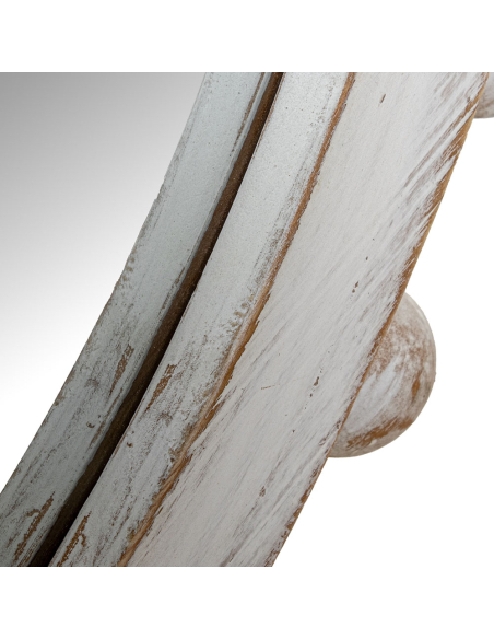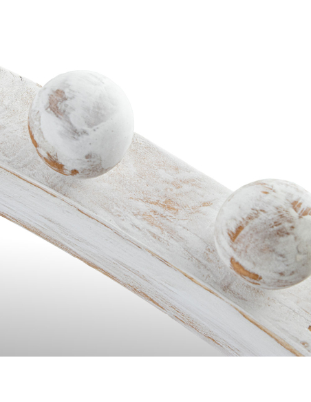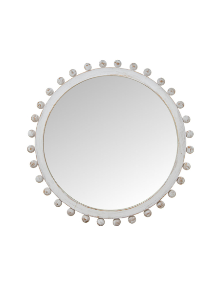 Espejo circular de esferas de madera 79 cm, destaca por su diseño decorativo y detallado, perfecto para añadir un toque de elegancia a cualquier espacio. El marco está fabricado en madera con un acabado envejecido en color blanco, lo que le confiere un estilo rústico y vintage. Los pequeños detalles de esferas de madera dispuestas alrededor del borde aportan una estética delicada y sofisticada, ideal para combinar con interiores de estilo shabby chic, farmhouse o clásico. Su superficie reflectante de alta calidad no solo ayuda a ampliar visualmente el espacio, sino que también aporta luminosidad a habitaciones pequeñas o con poca luz natural. Es una opción versátil, perfecta para pasillos, salones, recibidores o dormitorios.