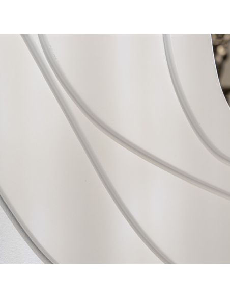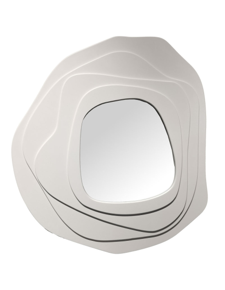 Espejo de pared madera DM blanco, es un accesorio decorativo ideal para ampliar y realzar cualquier espacio. Su diseño cuenta con un marco de líneas orgánicas y modernas que le da un carácter único. Perfecto para colgar en salones, dormitorios o recibidores, este espejo combina funcionalidad con estilo. Su acabado en color blanco permite integrarlo fácilmente en diferentes estilos decorativos, desde minimalistas hasta clásicos.