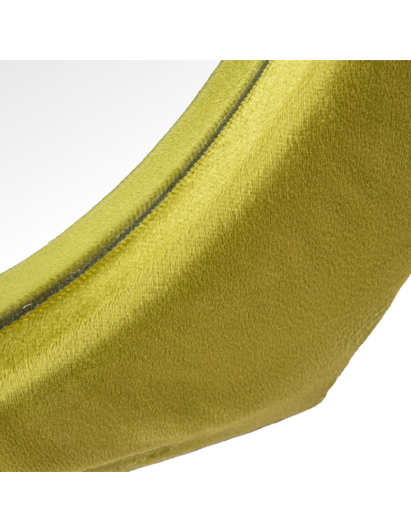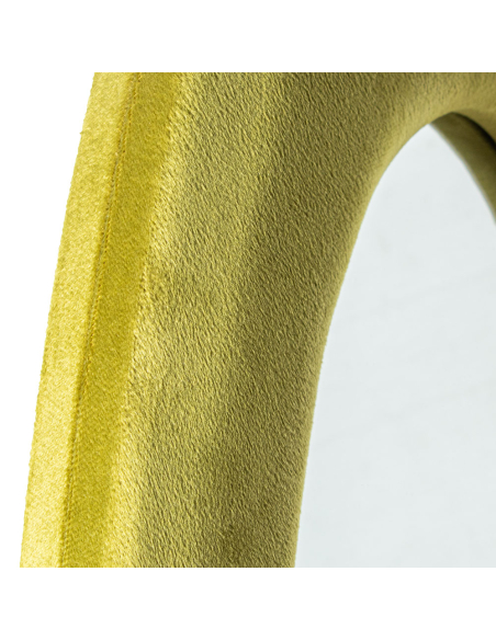 Espejo de pie irregular madera terciopelo, diseñado para destacar en cualquier rincón de tu hogar. Su marco, recubierto de terciopelo verde, aporta un toque de lujo y sofisticación, mientras que la base de madera garantiza estabilidad y durabilidad. Este espejo no solo cumple una función práctica, sino que también actúa como un elemento decorativo que realza cualquier espacio.