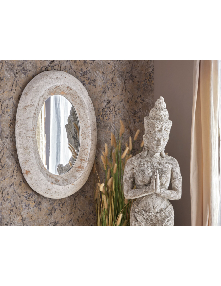 Espejo metal blanco jaspeado oro 74x10x130 cm, su marco metálico, con un acabado blanco jaspeado y toques dorados estratégicamente aplicados, crea un efecto vintage y elegante a la vez. La forma ovalada, poco común en espejos de este tamaño, le da un toque distintivo y sofisticado. Su gran tamaño lo convierte en un punto focal, perfecto para ampliar visualmente un espacio y añadir luminosidad. Los detalles dorados, sutiles pero presentes, capturan la luz y añaden un brillo cálido. Este espejo es ideal para un vestidor, un dormitorio amplio, un salón o incluso un recibidor, aportando un toque de glamour y personalidad.