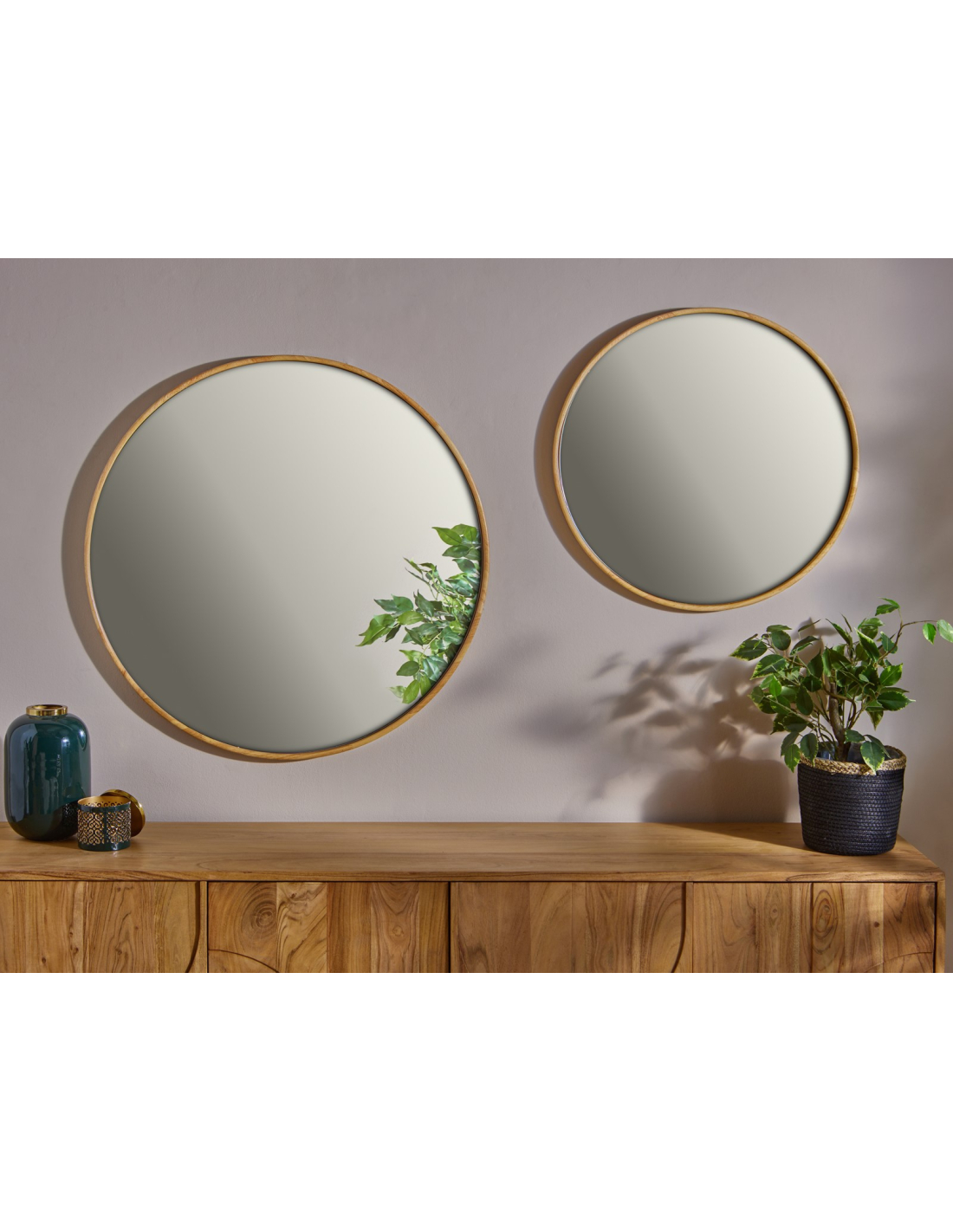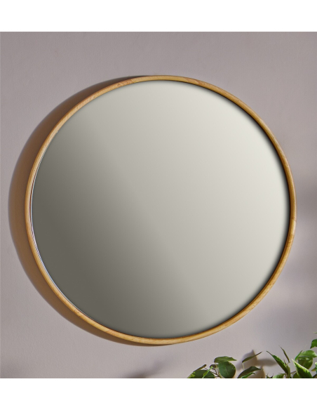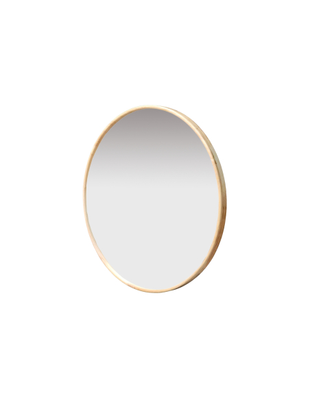 Espejo madera 60d, ofrece un formato circular de 60 cm de diámetro con marco en madera de Hevea y cristal de alta calidad. Su tamaño compacto lo hace perfecto para colocar en recibidores, baños o rincones decorativos donde se necesite sumar amplitud visual y luz. El diseño natural del marco le aporta un carácter acogedor, combinando con muebles de madera, fibras y textiles neutros. Fácil de instalar gracias a su enganche trasero, es una pieza práctica y elegante que nunca pasa de moda.