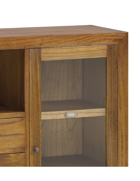 Si estás pensando en el diseño de tu despacho o una zona de trabajo dentro del salón la estantería con vitrina derecha combi Star varios compartimentos te resultará muy útil ya que puedes crear una gran estantería que combine espacios abiertos y cerrados jugando con las piezas combi de la colección Star. Esta pieza en concreto está formada por un rico y grueso enmarcado de madera que enfatiza su sensación de robustez y calidad, donde se incluyen dos cajones con dos huecos en uno de los lados. En el lado contrario, nos encontramos con una puerta de cristal con tres espacios.