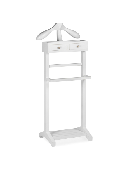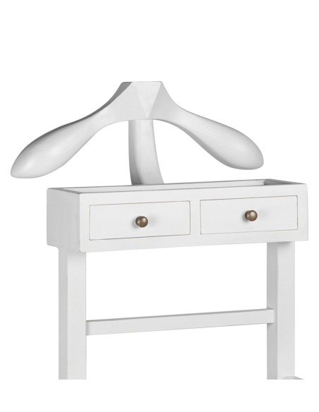 ¿No sabes dónde colocar la ropa del día siguiente? Aprovecha las ventajas de este galán de noche Everest con dos cajones con un concepto tradicional y súper práctico con gran funcionalidad. En él podrás apoyar los zapatos en su balda inferior, guardar los pendientes y tus collares en los dos pequeños cajones, o colgar tu americana en su percha superior. Colócalo en un pequeño rincón del dormitorio donde todas tus prendas y accesorios encontrarán su lugar.