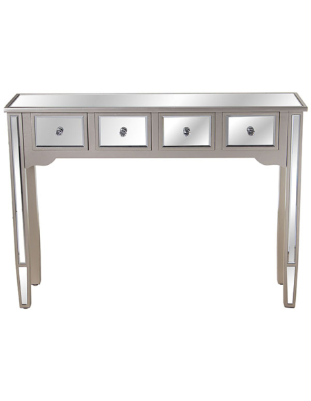 Consola madera y espejo cuatro cajones champán