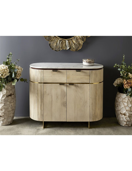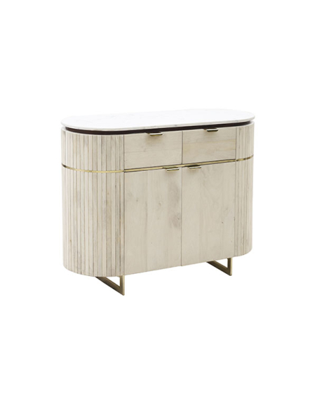 Mueble auxiliar Sextans terminación redondeada. Este mueble auxiliar tiene terminaciones redondeadas y está elaborado con madera DM de alta calidad. Es ideal para espacios minimalistas y sus dimensiones son de 100x40x80 cm.
