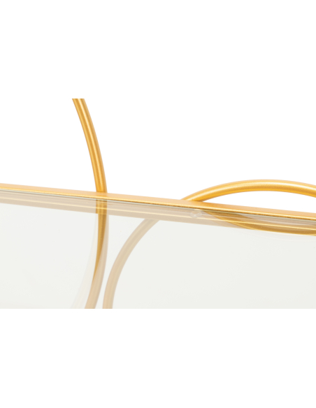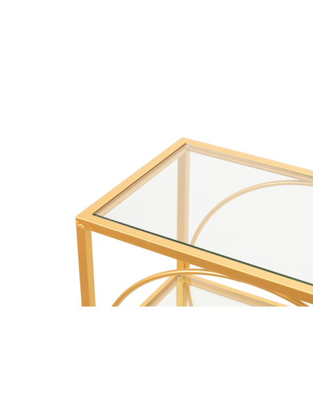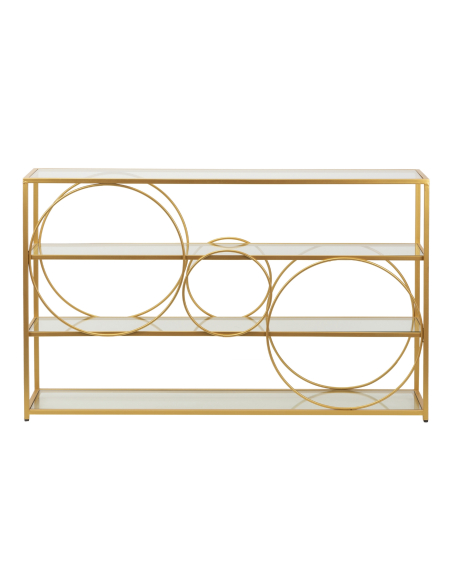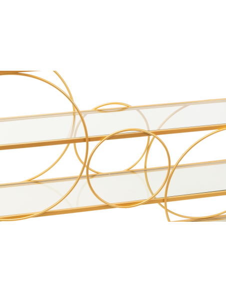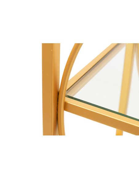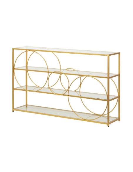 Consola recibidor metal dorado con cristales. Consola de metal dorado con tapa de cristal y estantes inferiores.