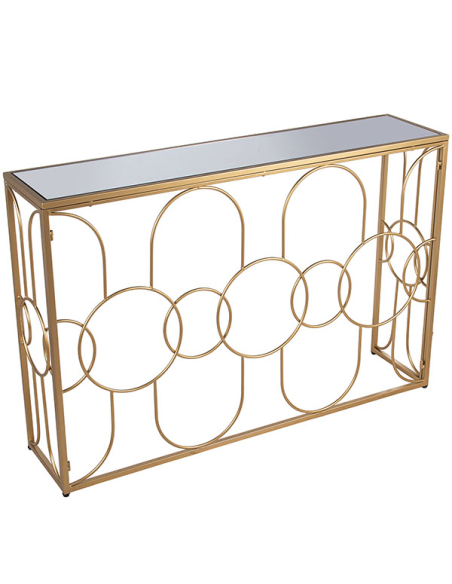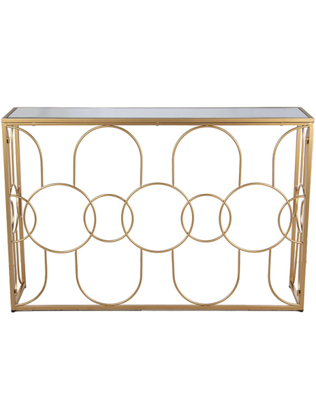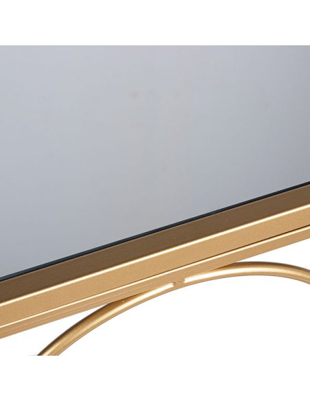 Consola recibidor metal dorado y encimera cristal, una pieza elegante con la que decorar la entrada del hogar. Fabricada la estructura en metal acabado dorado con encimera de cristal que proporciona luminosidad al espacio.
