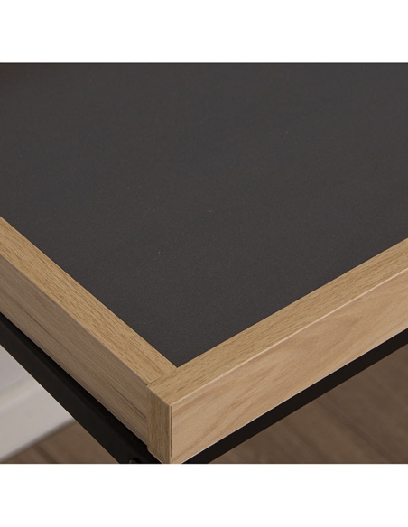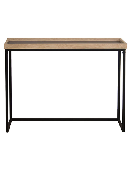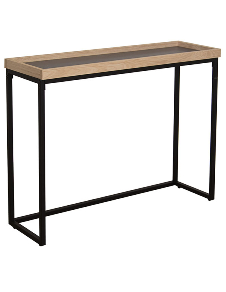 Consola recibidor estructura de metal negro y encimera madera natural. Sencilla consola con la estructura de metal y encimera de DM en dos tonos con forma de bandeja.