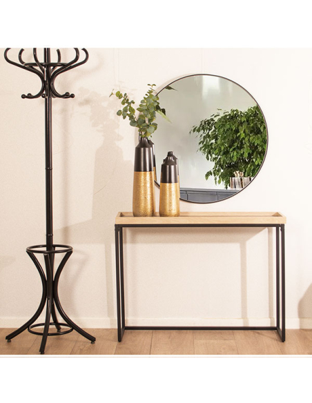 Consola recibidor estructura de metal negro y encimera madera natural