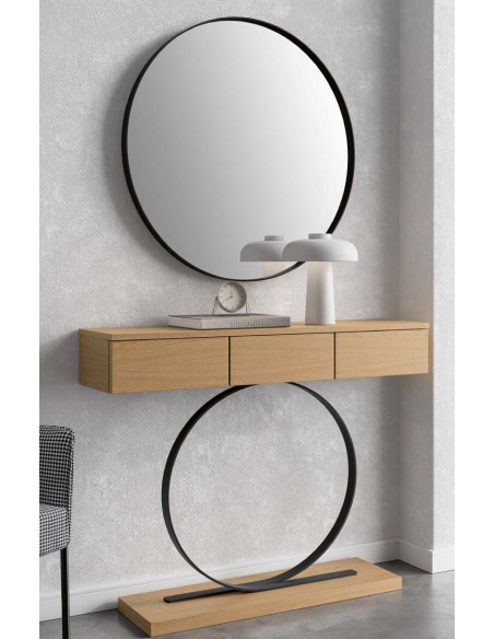 Modelo de la foto: Consola Roble Nature con Aro Negro / Espejo Negro Mate
