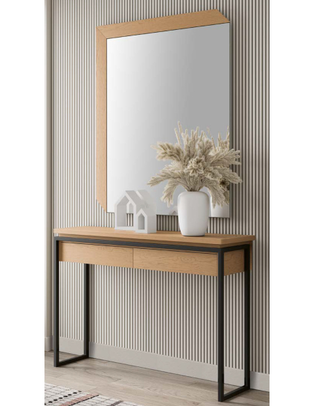 Modelo de la foto: Consola Roble Seda con patas metálicas Negro / Espejo Roble Seda