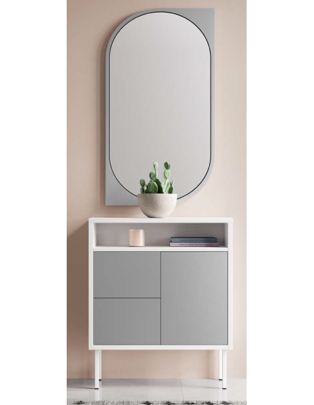 Personalizables: consola y espejo en cualquier acabado de la carta de colores de madera y lacados, patas en blanco o negro.