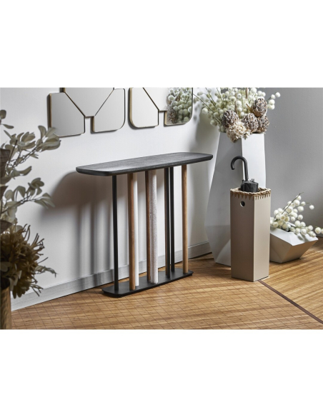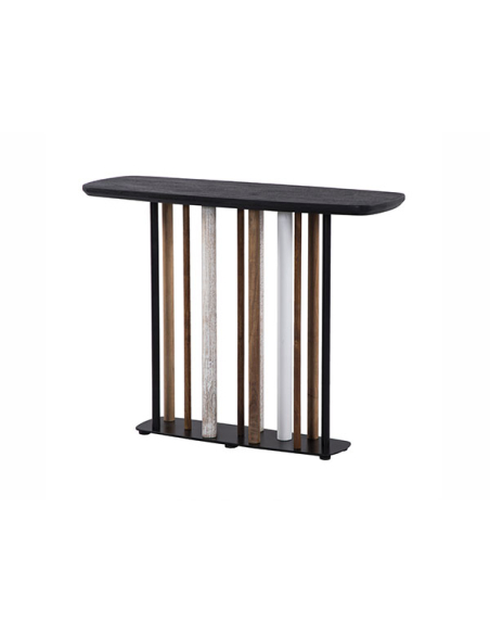 Consola recibidor rústica acacia y DM. En madera de acacia y DM, esta consola es el complemento perfecto para tu recibidor de estilo rústico. ¡Su diseño original destacará en cualquier rincón!