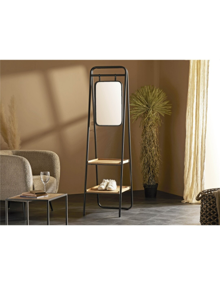 Espejo de pie con 2 estantes metal y madera. Ideal para el recibidor o un dormitorio, este espejo de pie cuenta con 2 estantes para que organices tus zapatos, accesorios o ropa.