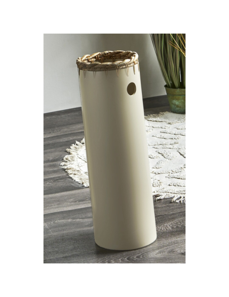 Paragüero de bambú Topo con trenza decorativa. Paragüero de bambú con detalle en jacinto de agua, el hogar perfecto para tus paraguas en el recibidor.