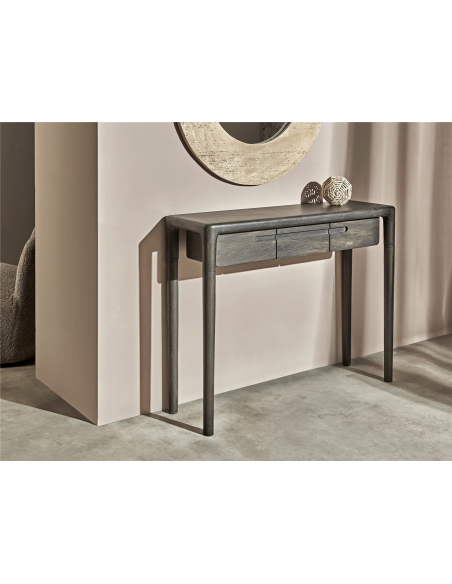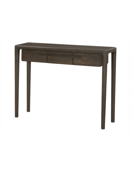 Consola recibidor Ares mango wengué, combina la calidez de la madera de mango con un diseño elegante y funcional, perfecta para dar la bienvenida a tu hogar con estilo. Esta consola, con su acabado wengué, aporta estilo y amplitud al espacio, mientras que sus líneas rectas y sencillas le dan un toque moderno y minimalista. La superficie, amplia y resistente, ofrece un espacio ideal para colocar objetos decorativos, llaves, correspondencia o cualquier otro elemento que desees tener a mano al entrar o salir de casa. Cuenta con tres cajones, de un diseño minimalista, que se mimetizan con la estructura.