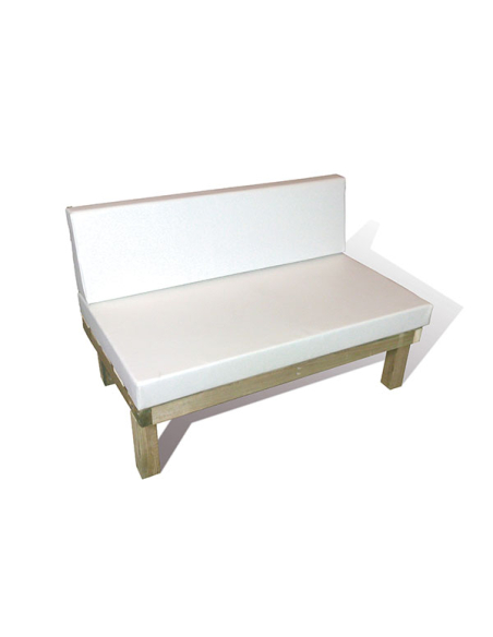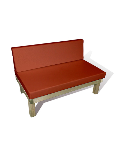 Materiales: Madera de pino acondicionada con Autoclave para exteriores, relleno de poliuretano de alta densidad.