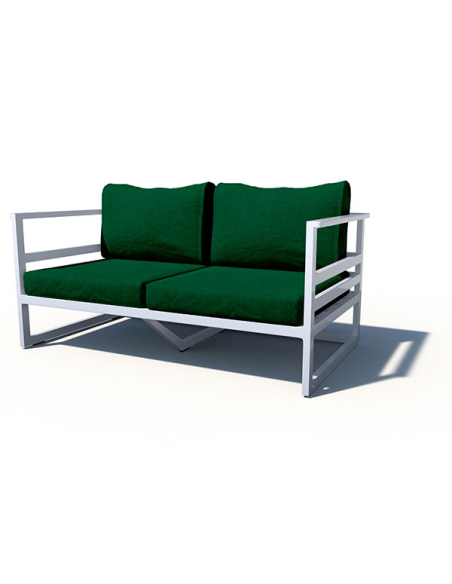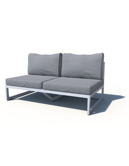 Sofá de aluminio dos plazas sin brazos. Un lujoso mueble fabricado en aluminio, de alta durabilidad y calidad, con modernos acabados. Combínalo con otros muebles de la misma colección.