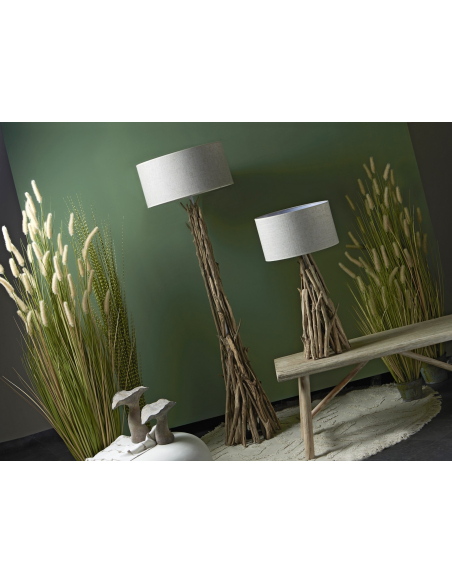Lámpara de pie Sarsi ramas castaño 162 cm, esta pieza única transformará tu espacio con su presencia escultural y su luz cálida y acogedora. El pie de la lámpara está formado por ramas de castaño cuidadosamente seleccionadas y ensambladas, creando una estructura orgánica y asimétrica que evoca la forma de un árbol. La pantalla, de un tejido, difumina la luz de manera suave y uniforme, creando un ambiente relajante e íntimo.