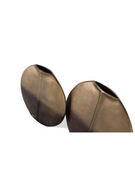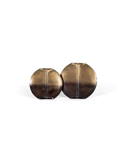 Set de 2 jarrones redondos planos, cada jarrón presenta una forma redonda plana con una abertura central, lo que permite una fácil colocación y exhibición de tus flores favoritas. La línea vertical que atraviesa el centro del jarrón agrega interés visual y textura, creando un punto focal único en cualquier habitación. Fabricados con metal de alta calidad, estos jarrones son duraderos y resistentes, lo que garantiza su belleza y funcionalidad a lo largo del tiempo. Su acabado en tono neutro complementará una amplia variedad de estilos de decoración, desde moderno hasta industrial y más allá. Coloca estos jarrones en tu sala de estar, comedor, dormitorio o cualquier otro espacio que desees embellecer. Úsalos solos como piezas decorativas llamativas o agrúpalos con otros elementos de tu decoración para crear una exhibición visualmente impactante.