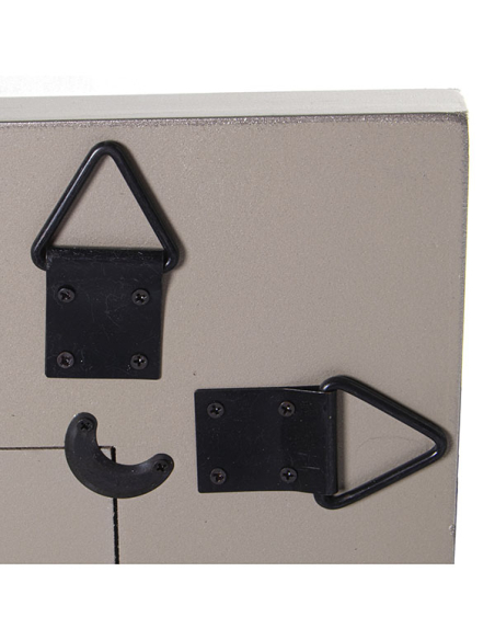 Espejo madera champagne, presenta un marco con recortes metálicos intercalados con pequeños espejos, creando un efecto elegante y delicado. Perfecto para añadir un toque de lujo y estilo a cualquier habitación, este espejo está listo para colgar y viene equipado con ganchos metálicos que facilitan su instalación rápida y segura. Ideal para aquellos que buscan combinar funcionalidad y diseño en su decoración, esta pieza se convierte en un punto focal que embellece y enriquece cualquier espacio en tu hogar.