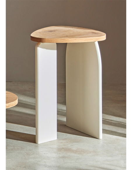 Mesa auxiliar makalani chapado fresno 60x45x40 cm, a superficie chapada en madera de fresno, exhibe la belleza de la veta natural, aportando un toque orgánico y acogedor. Las patas, con un diseño geométrico y un acabado lacado en blanco, ofrecen un contraste moderno y elegante, a la vez que garantizan una gran estabilidad. Su tamaño compacto la hace ideal para colocar junto al sofá, la butaca o la cama, ofreciendo un espacio práctico para colocar una lámpara, un libro, una taza de café o cualquier otro objeto que necesites tener a mano. Esta mesa auxiliar es una pieza versátil que se adapta a una variedad de estilos decorativos, desde los más modernos y minimalistas hasta los más clásicos y rústicos.