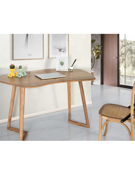 Escritorio acacia maciza irregular, la madera es conocida por su durabilidad y calidez. La tapa de forma irregular es la protagonista, añadiendo un toque distintivo y orgánico a la pieza, asegurando que cada escritorio sea único. La madera de acacia aporta una belleza natural con sus ricas tonalidades y vetas, creando un ambiente de trabajo cálido y acogedor. El diseño de este escritorio combina funcionalidad con estilo, ofreciendo una superficie amplia y cómoda para trabajar, estudiar o dar rienda suelta a tu creatividad. Su estética natural y su forma original lo convierten en una pieza que se integrará con elegancia en cualquier entorno de trabajo, ya sea en casa o en la oficina.