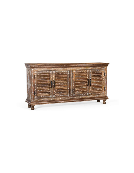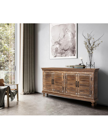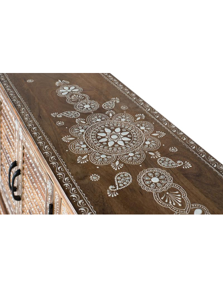 Aparador Oriental pintado a mano, es una verdadera obra de arte, con intrincados detalles pintados a mano que evocan la rica tradición y el espíritu artístico de Oriente. Cada trazo y cada motivo cuentan una historia, convirtiendo este mueble en una pieza única y cautivadora. Además de su belleza estética, este aparador ofrece una funcionalidad práctica para el almacenamiento. Sus puertas y cajones proporcionan un espacio generoso para organizar vajilla, ropa de mesa, objetos decorativos o cualquier otro elemento que desees guardar con estilo. Su presencia imponente y sus detalles elaborados lo convierten en un punto focal que añadirá un toque de exotismo y sofisticación a cualquier salón, comedor o recibidor. Si buscas una pieza de mobiliario que sea mucho más que un simple almacenamiento, que sea una expresión de arte y cultura, el aparador oriental pintado a mano es la elección perfecta. Su singularidad y su belleza atemporal lo convertirán en una herencia para las futuras generaciones, llenando tu hogar con un encanto misterioso y elegante.