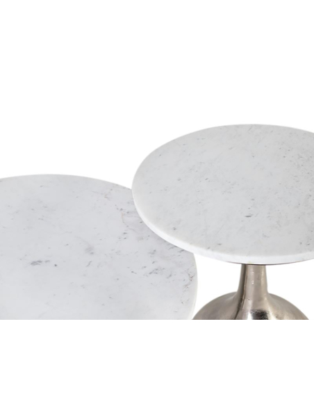 Set de 2 mesas auxiliares aluminio gota tapa mármol