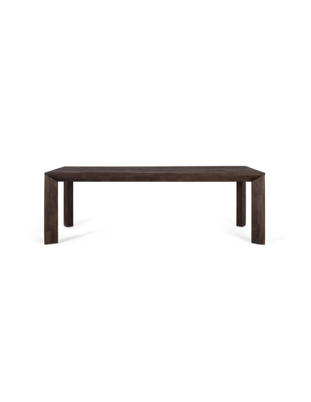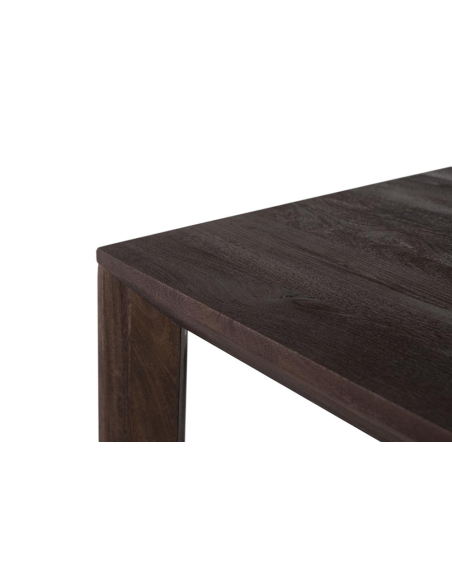 Mesa de comedor rectangular oscura, fabricada en madera de mango maciza, destaca por su sofisticado acabado en color nogal oscuro, que le confiere una presencia distinguida y cálida. Su diseño minimalista, de líneas limpias y patas rectas y robustas, la convierte en una pieza atemporal y versátil. La belleza de esta mesa reside en su sencillez y en la calidad de su material. La madera de mango garantiza durabilidad y resistencia, mientras que el acabado oscuro aporta un toque de elegancia que se adapta fácilmente a distintos estilos decorativos. Su amplia superficie rectangular ofrece comodidad para las comidas diarias y las celebraciones especiales. Perfecta para comedores modernos, minimalistas, clásicos o incluso rústicos contemporáneos, esta mesa se integra sin esfuerzo en tu hogar. Es la base ideal para crear un ambiente acogedor y elegante, combinando funcionalidad, robustez y un diseño que perdura en el tiempo.