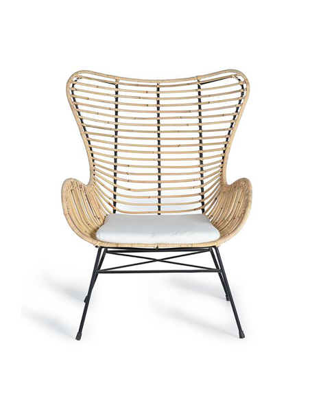 Set 2 sillas ratán y metal respaldo alto, inspirados en los icónicos diseños mid-century, presentan una espectacular estructura tejida en ratán natural, con un generoso respaldo alto tipo "wingback" que invita al relax. La base de patas metálicas finas en color negro aporta un toque moderno y ligero. Incluyen un cojín de asiento blanco. Estas sillas no son solo asientos, son piezas escultóricas que combinan la belleza artesanal del ratán con un diseño ergonómico y llamativo. El alto respaldo ofrece un excelente soporte y una sensación envolvente, perfectas para crear un rincón de lectura o como asientos destacados en el salón. Este set es ideal para quienes buscan piezas con personalidad y un confort superior. Encajan a la perfección en ambientes bohemios, nórdicos, mid-century o contemporáneos, aportando textura natural, diseño icónico y un oasis de comodidad a tu hogar.