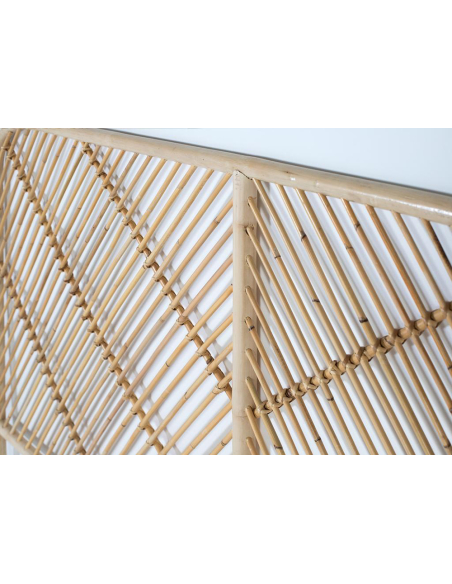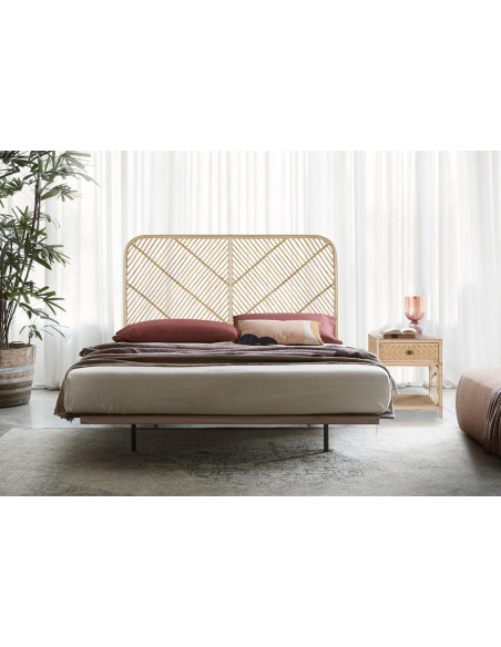 Cabecero de 165cm en ratán natural rectangular, su estructura rectangular, con las esquinas superiores suavemente redondeadas, enmarca un panel tejido en ratán con un atractivo patrón en espiga o chevron. Es ideal para camas de matrimonio estándar (150-160 cm). Este cabecero combina la textura orgánica y acogedora del ratán natural con un diseño más contenido y contemporáneo que el de los modelos "flor". El patrón tejido aporta interés visual y un toque artesanal, mientras que la forma general es limpia y versátil. Ideal para dormitorios de estilo nórdico, bohemio moderno, costero o contemporáneo que busquen incorporar elementos naturales de forma sutil. Aporta calidez, textura y un diseño equilibrado y actual a tu espacio de descanso.