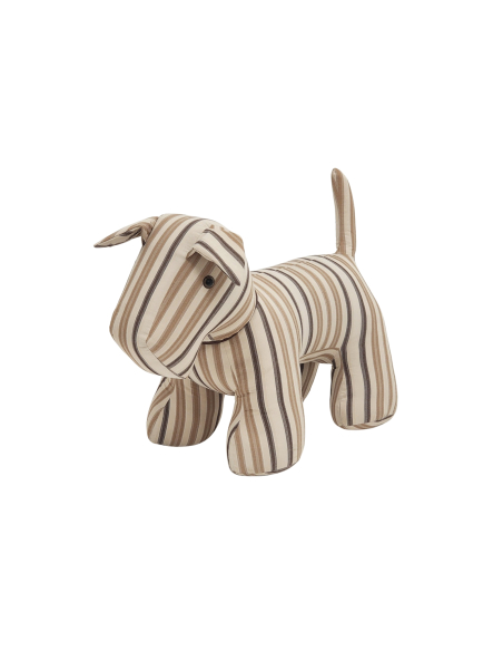 Muñeco decorativo perro tela rallada, este perro decorativo de tela a rayas en tonos tierra aporta calidez inmediata y un punto divertido a salones, dormitorios infantiles o recibidores. El tejido de poliéster es suave al tacto y muy resistente al uso diario, mientras que los detalles de las orejas y el cuello realzan su carácter. Su paleta neutra combina fácil con estilos nórdicos, boho o mediterráneos, aportando textura sin recargar visualmente. El interior lastrado con arena le confiere estabilidad para colocarlo sobre alfombras o suelos lisos sin que se mueva, por lo que también funciona como tope de puerta o pisapapeles XL. Colócalo junto a una estantería o a los pies del sofá para completar el rincón de lectura.