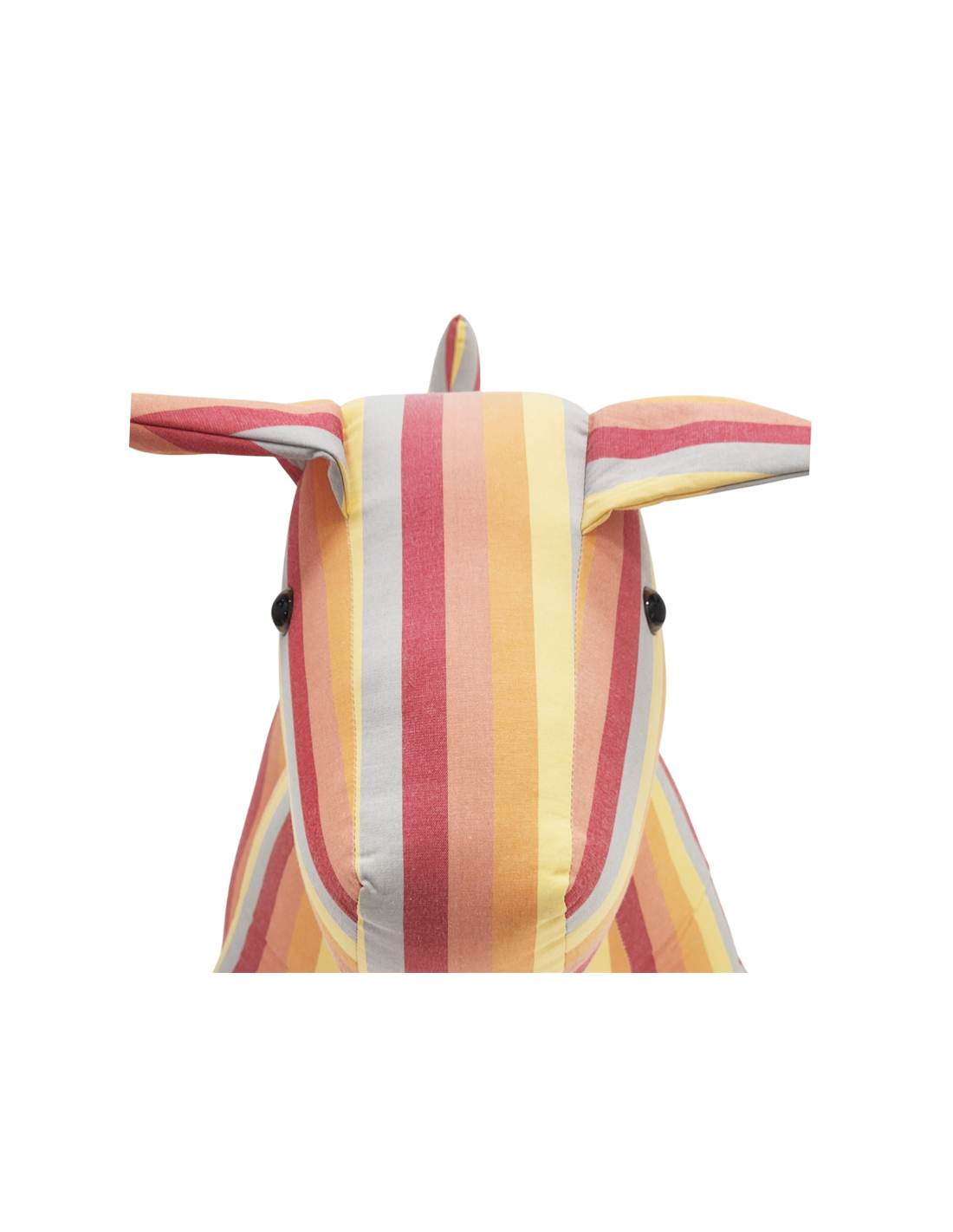 Muñeco decorativo perro tela rallada multicolor, con sus rayas en colores vivos, este perro decorativo ilumina al instante cualquier estancia y se convierte en el acento perfecto para dar vida a habitaciones juveniles, zonas de juego o rincones creativos del salón. El tejido de poliéster es duradero y mantiene la forma, y los ojos tipo botón suman un guiño simpático. El relleno con arena aporta peso y estabilidad para que se mantenga erguido, de modo que además de decorar puede actuar como tope de puerta o sujetar un montón de revistas. Úsalo para introducir color en espacios neutros o combinarlo con cojines y plaids a tono.