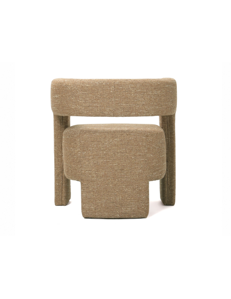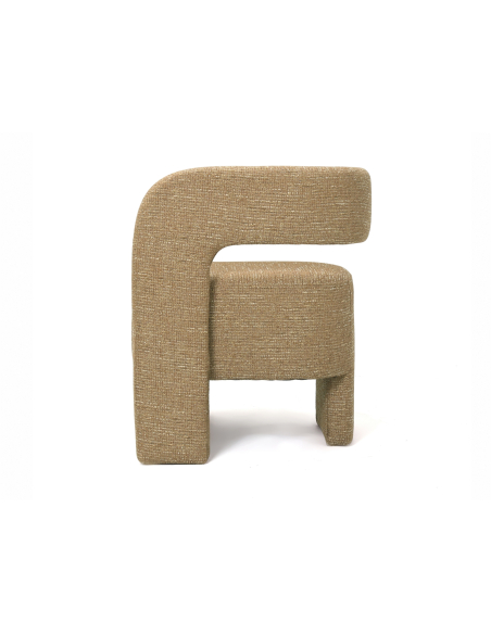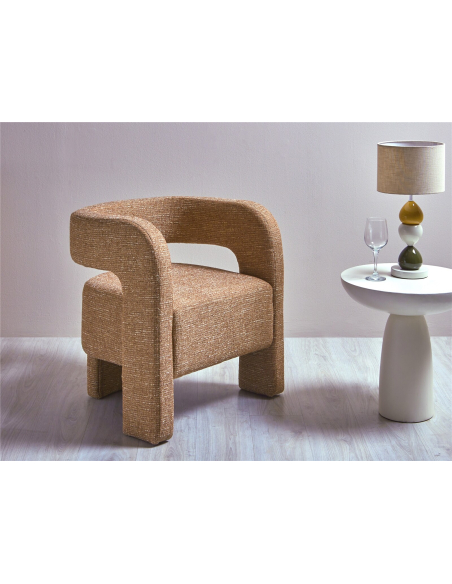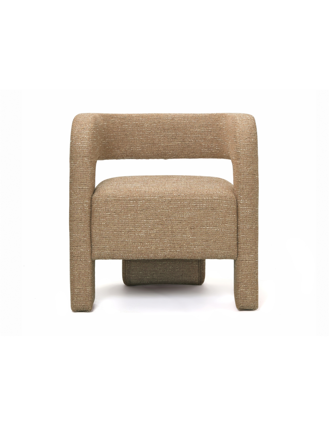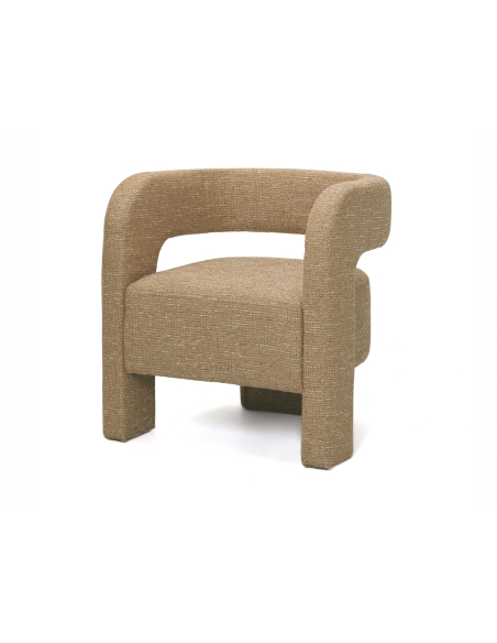 Butaca Bakari tapizada class, combina una estructura de madera de pino con un tapizado tejido en color caramelo que aporta calidez y textura. Su respaldo y brazos integrados envuelven el cuerpo, mientras el acolchado generoso asegura confort en sesiones de lectura o conversación. Con 47 cm de altura de asiento y 55 cm de fondo, ofrece una postura ergonómica y natural. Es perfecta como pieza protagonista en el salón o acompañando una consola en el dormitorio. Para un rincón de lectura, combínala con una lámpara de pie y una mesita auxiliar.