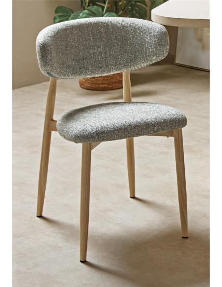 Silla de comedor Aka class tela verde, reúne curvas amables y una estética ligera. Su respaldo envolvente en semiarco abraza la espalda y deja un hueco visual que despeja el conjunto, mientras el tapizado en verde aporta luminosidad y una textura sutil que viste la mesa sin recargarla. El asiento proporcionado de 45×46 cm favorece una postura natural y estable. Gracias a su estructura metálica esbelta y a sus patas afinadas, funciona muy bien en comedores compactos o cocinas abiertas donde se busca ligereza visual. Combina con mesas redondas y rectangulares, maderas claras y cerámicas artesanales; añade dos unidades más como cabeceras y conseguirás un comedor contemporáneo, cálido y muy cómodo para largas sobremesas.