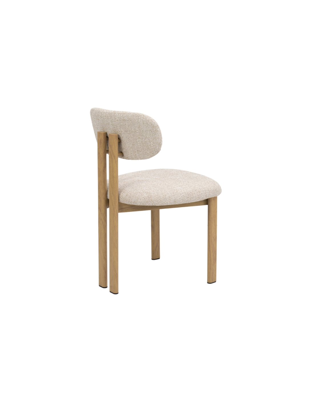 Silla de comedor Nyree class tela beige, apuesta por un respaldo ovalado independiente que parece flotar sobre un asiento generoso. El tejido en beige multiplica la luz y aporta una lectura serena, ideal para comedores familiares, salas de reuniones en casa o home office con mesa grande. El asiento amplio de 48×48 cm ofrece más superficie de apoyo para estar a gusto durante horas. Su estructura metálica delgada y estable estiliza el conjunto y facilita la convivencia con aparadores, vitrinas y lámparas de pie. Colócala alrededor de mesas rectangulares para reforzar el eje visual o en mesas redondas si quieres potenciar la sensación de simetría y equilibrio.