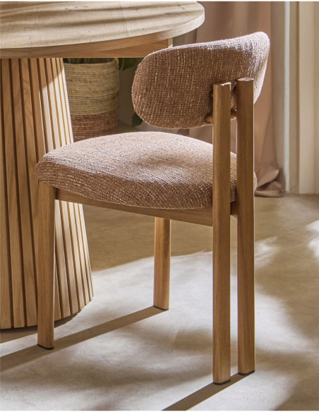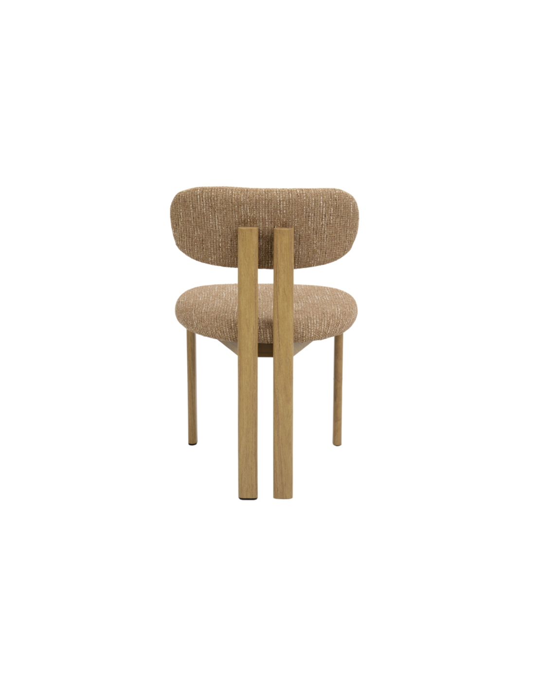 Silla de comedor Nyree class tela caramelo, apuesta por un respaldo ovalado independiente que parece flotar sobre un asiento generoso. El tejido en caramelo multiplica la luz y aporta una lectura serena, ideal para comedores familiares, salas de reuniones en casa o home office con mesa grande. El asiento amplio de 48×48 cm ofrece más superficie de apoyo para estar a gusto durante horas. Su estructura metálica delgada y estable estiliza el conjunto y facilita la convivencia con aparadores, vitrinas y lámparas de pie. Colócala alrededor de mesas rectangulares para reforzar el eje visual o en mesas redondas si quieres potenciar la sensación de simetría y equilibrio.