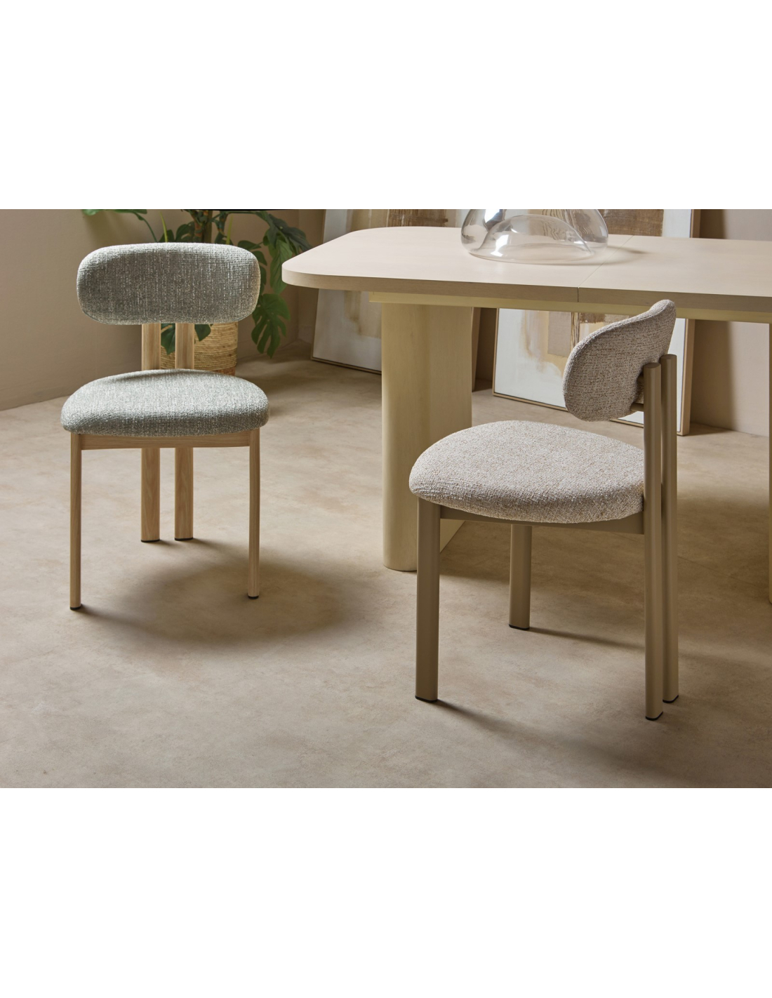 Silla de comedor Nyree class tela verde, apuesta por un respaldo ovalado independiente que parece flotar sobre un asiento generoso. El tejido en verde multiplica la luz y aporta una lectura serena, ideal para comedores familiares, salas de reuniones en casa o home office con mesa grande. El asiento amplio de 48×48 cm ofrece más superficie de apoyo para estar a gusto durante horas. Su estructura metálica delgada y estable estiliza el conjunto y facilita la convivencia con aparadores, vitrinas y lámparas de pie. Colócala alrededor de mesas rectangulares para reforzar el eje visual o en mesas redondas si quieres potenciar la sensación de simetría y equilibrio.