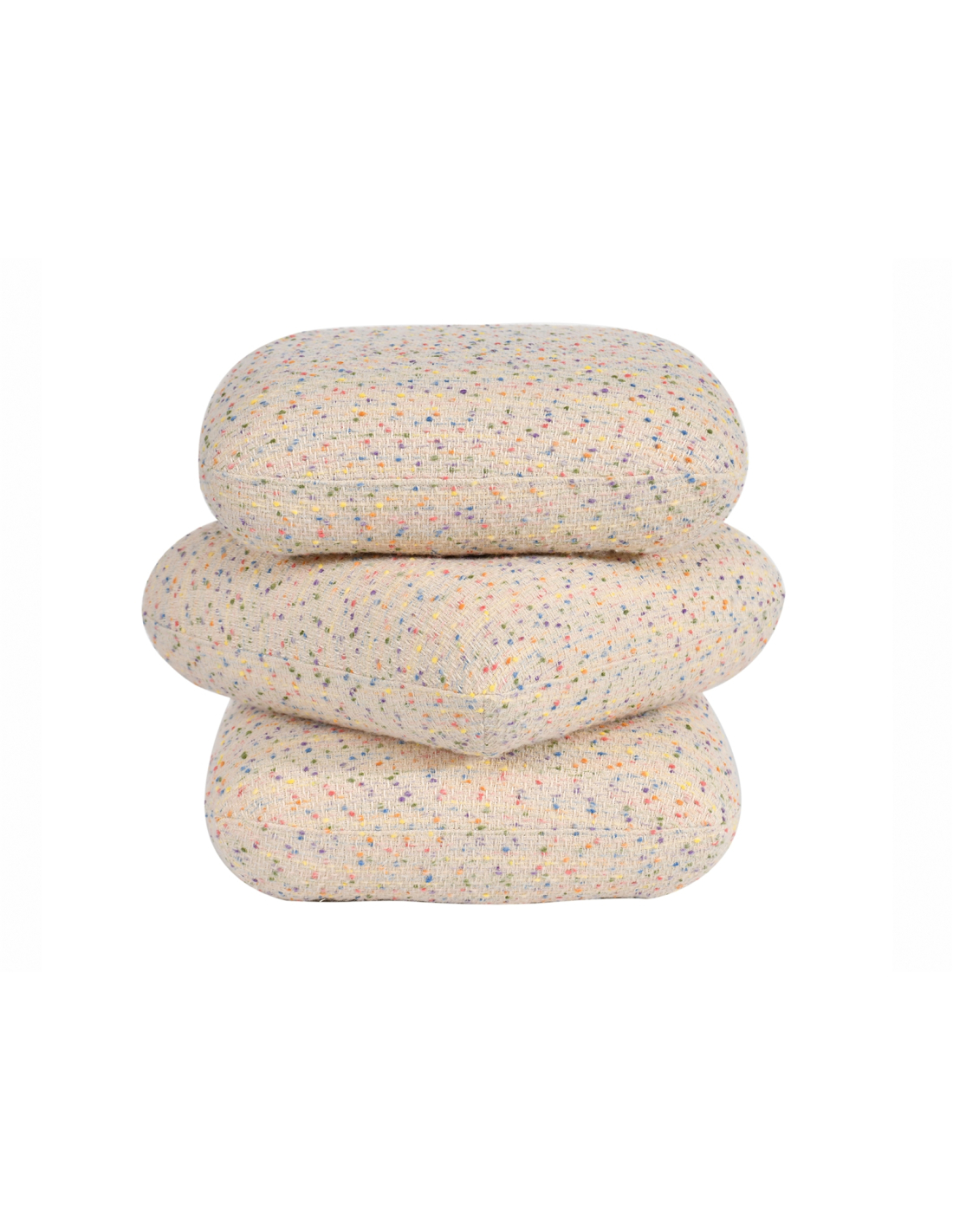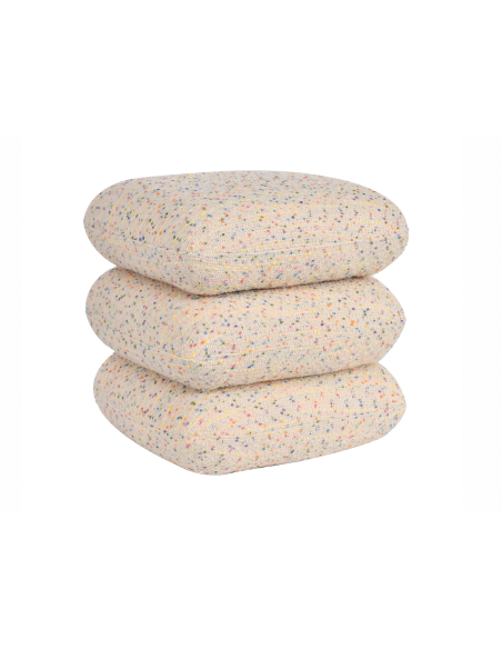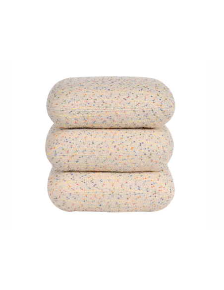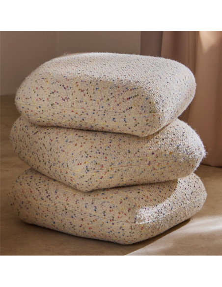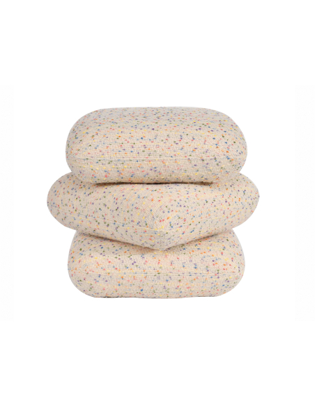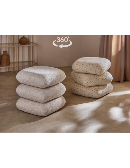 Puff giratorio Marama tapizada multicolor, reinterpreta el puf clásico con un diseño de cantos redondeados y un tapizado multicolor en verde de tacto rico y aspecto tejido que suma calidez a cualquier estancia. Su cuerpo bajo y mullido es ideal como asiento auxiliar, reposapiés o pieza de acento junto al sofá, y se integra sin esfuerzo en salones, dormitorios o zonas de lectura. El sistema giratorio oculto aporta un plus de funcionalidad: permite orientar el cuerpo con un gesto suave, acercarse a la mesa o cambiar de foco visual sin mover el puf del sitio. La base de madera ofrece apoyo sólido y una estética limpia, perfecta para espacios contemporáneos, mediterráneos o japandi. Úsalo individualmente para completar el sofá, en pareja frente a una mesa baja para reuniones informales, o como módulo flexible en zonas chill-out donde se valora la versatilidad y el confort.