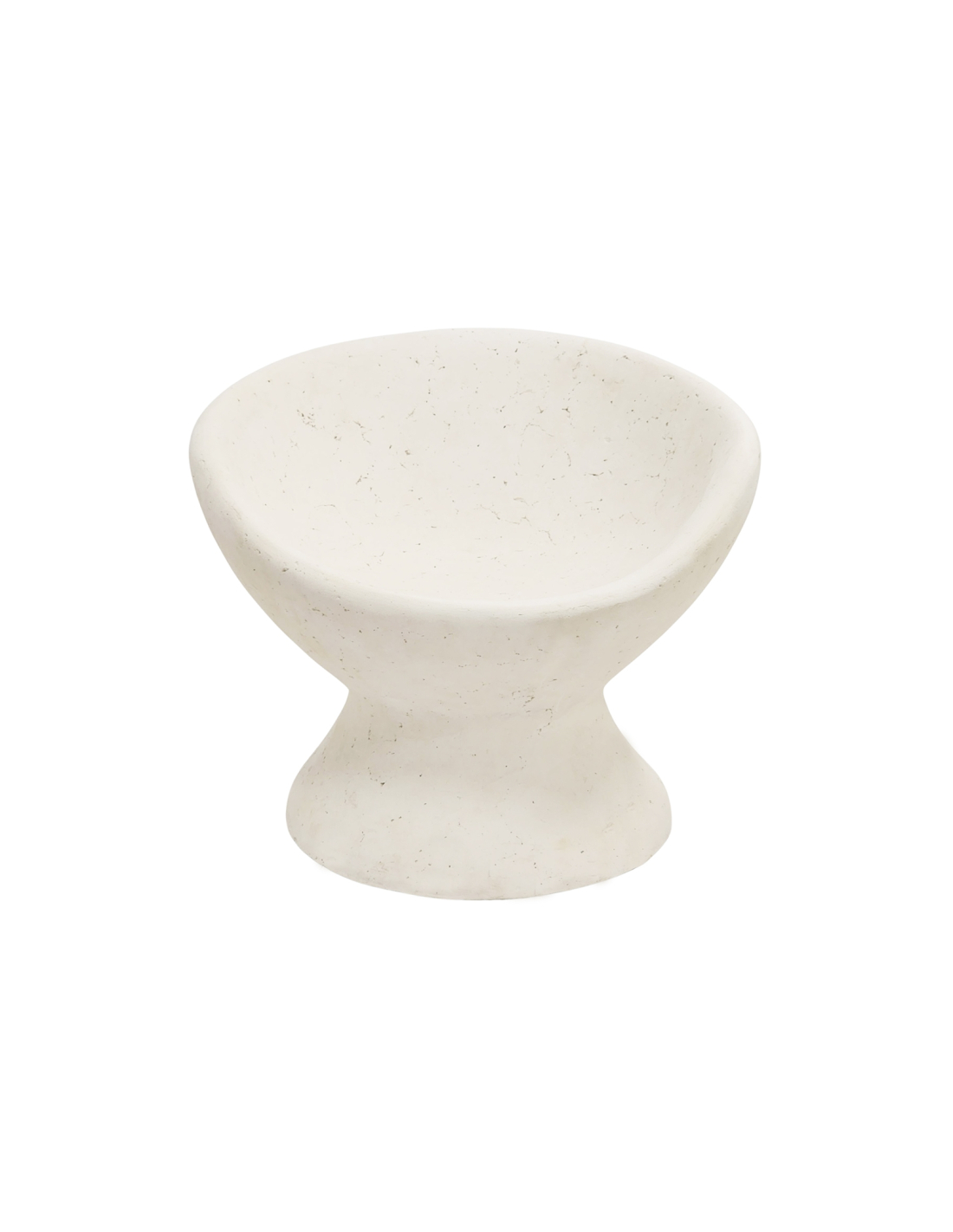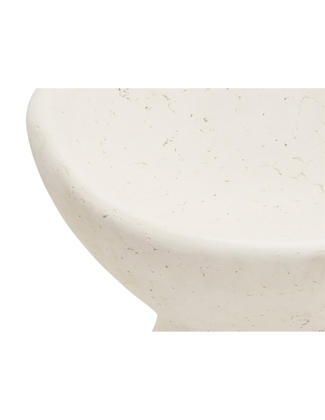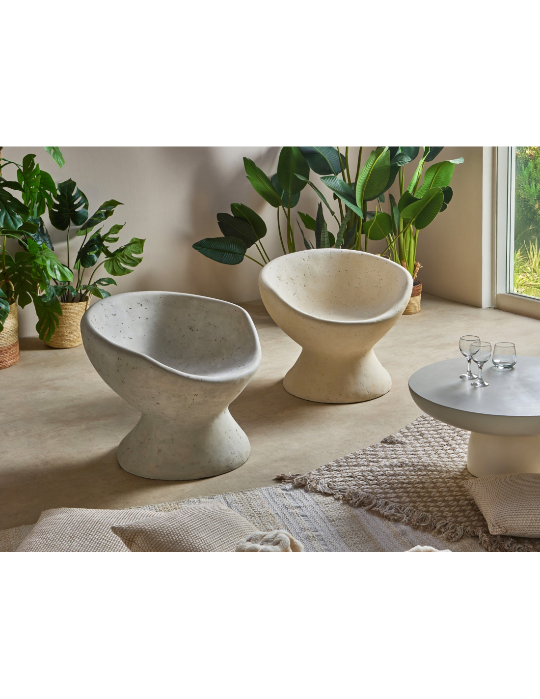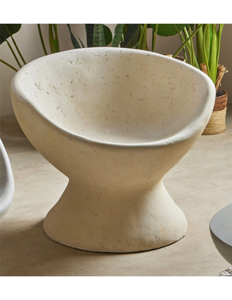 Asiento textura símil piedra blanco, de diseño escultural fabricado en fibrocemento con acabado blanco que imita la textura de la piedra, aportando un estilo natural y vanguardista a interiores y exteriores. Con base de 51 cm de diámetro y respaldo envolvente de 29 cm de altura, brinda comodidad y soporte ergonómico. Su superficie curva permite sentarse de manera confortable, mientras su estética minimalista lo convierte en protagonista de cualquier ambiente. Ideal para terrazas, jardines o salones con decoración contemporánea, combina resistencia, durabilidad y un aspecto artesanal único. Una pieza que funciona tanto como asiento práctico como elemento decorativo de gran personalidad.