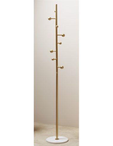 Perchero oro base mármol 170 cm, un accesorio elegante y funcional que combina la sobriedad del mármol con el brillo sofisticado del metal en acabado dorado. Su diseño estilizado y vertical optimiza el espacio, permitiendo colgar abrigos, bolsos y accesorios de manera ordenada. La base de mármol asegura estabilidad y resistencia, mientras que los múltiples ganchos metálicos ofrecen gran capacidad de uso. Con sus líneas modernas, se integra perfectamente en recibidores, dormitorios o despachos, aportando un detalle decorativo además de práctico. Es la mezcla perfecta entre utilidad y diseño contemporáneo.